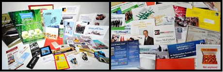 Using our 4-page Monster Brocher (11” x 25.5”) featuring 8 to 12 ads offering industry exclusivity that gets seen. Unlike a multiple page magazine or envelope where you get lost since not everyone looks through the magazine or opens the envelope, eyeballs absolute get on what is the largest piece of mail a prospect will have ever received. Front And Back Page are rotated for our partners at no additional cost even though there is not a bad spot on one piece of folded paper.
